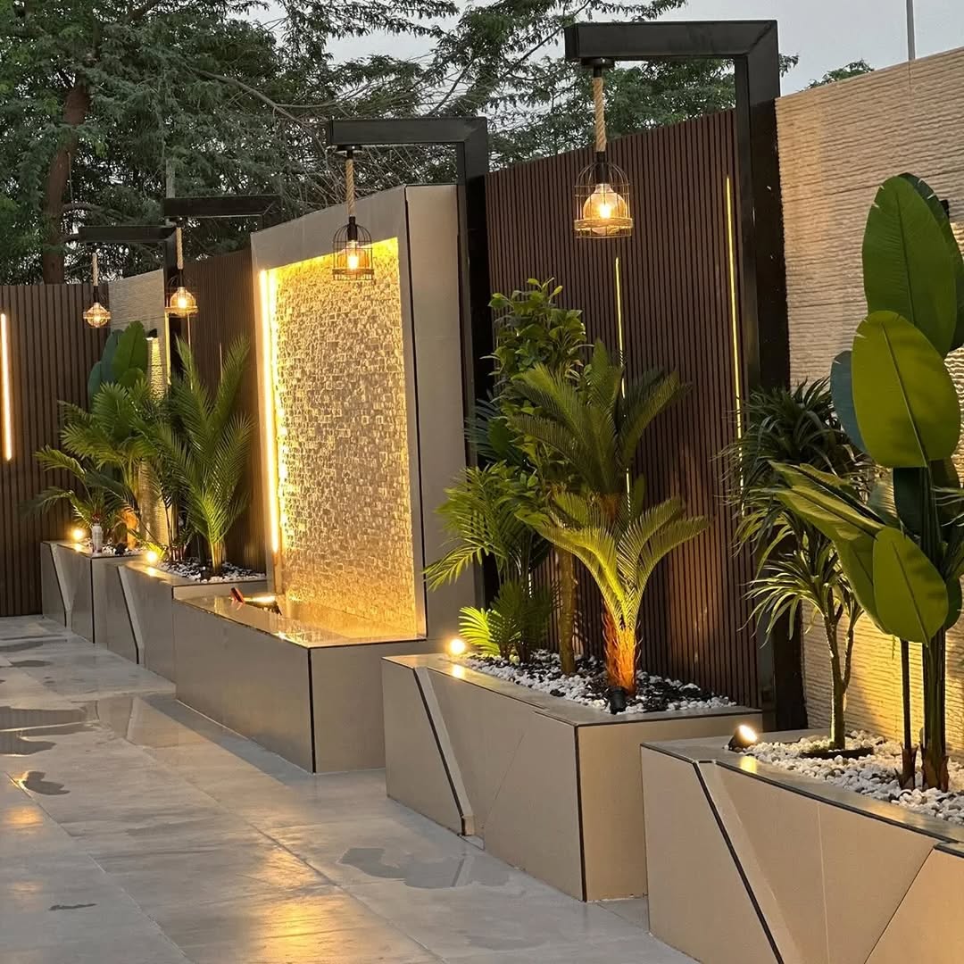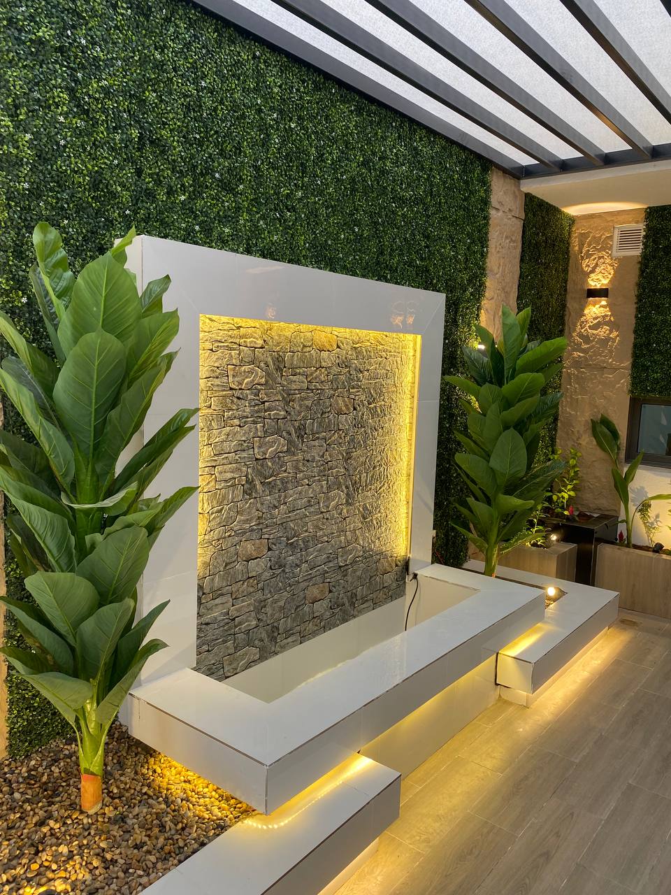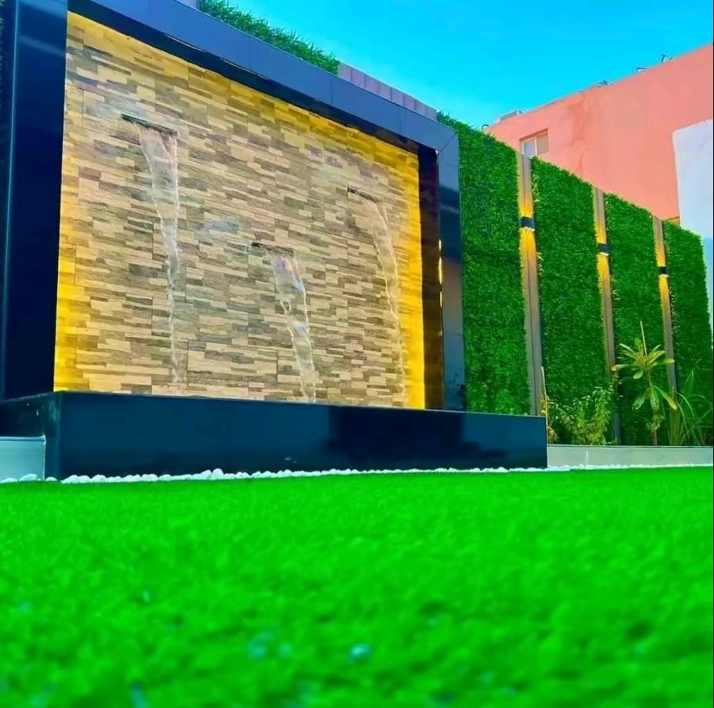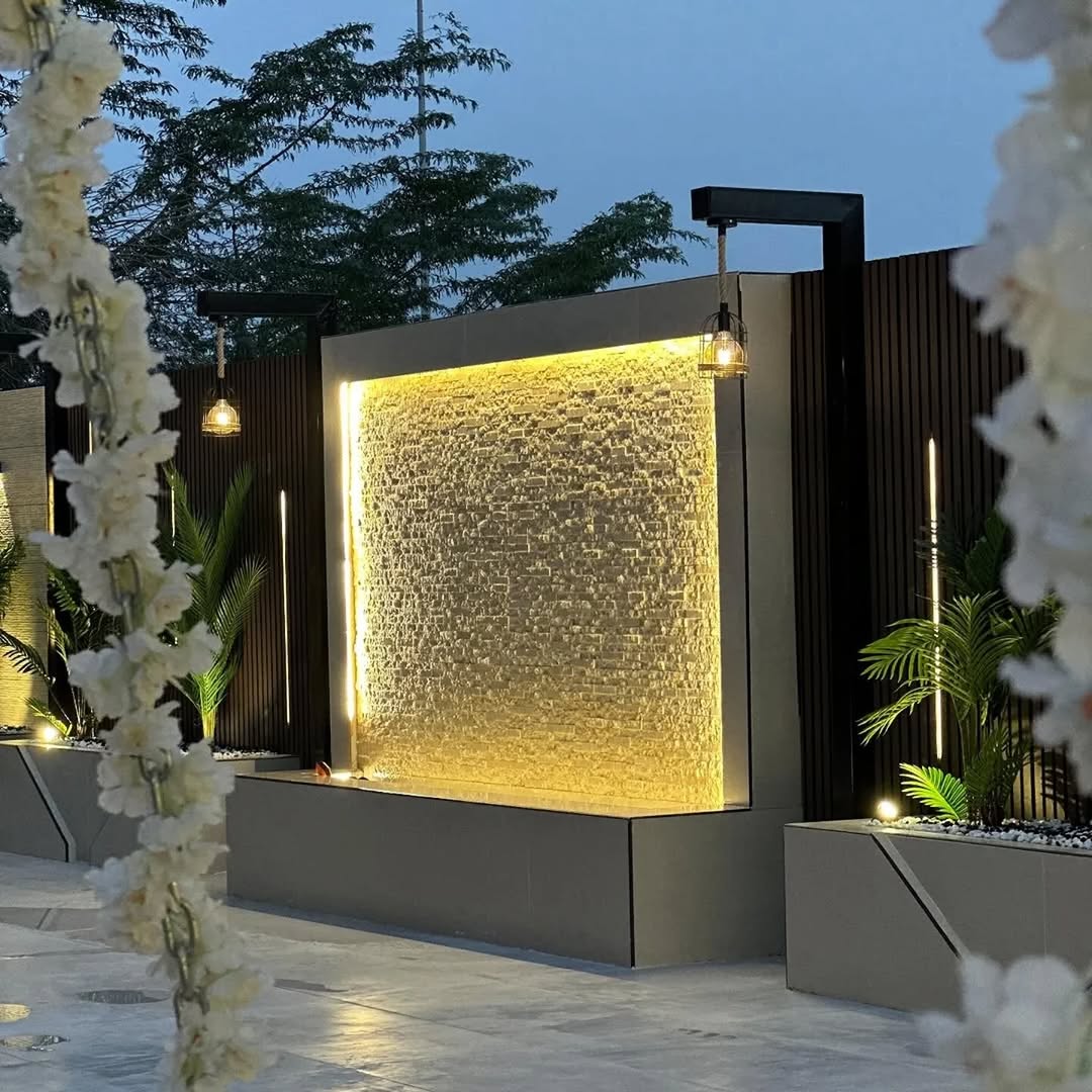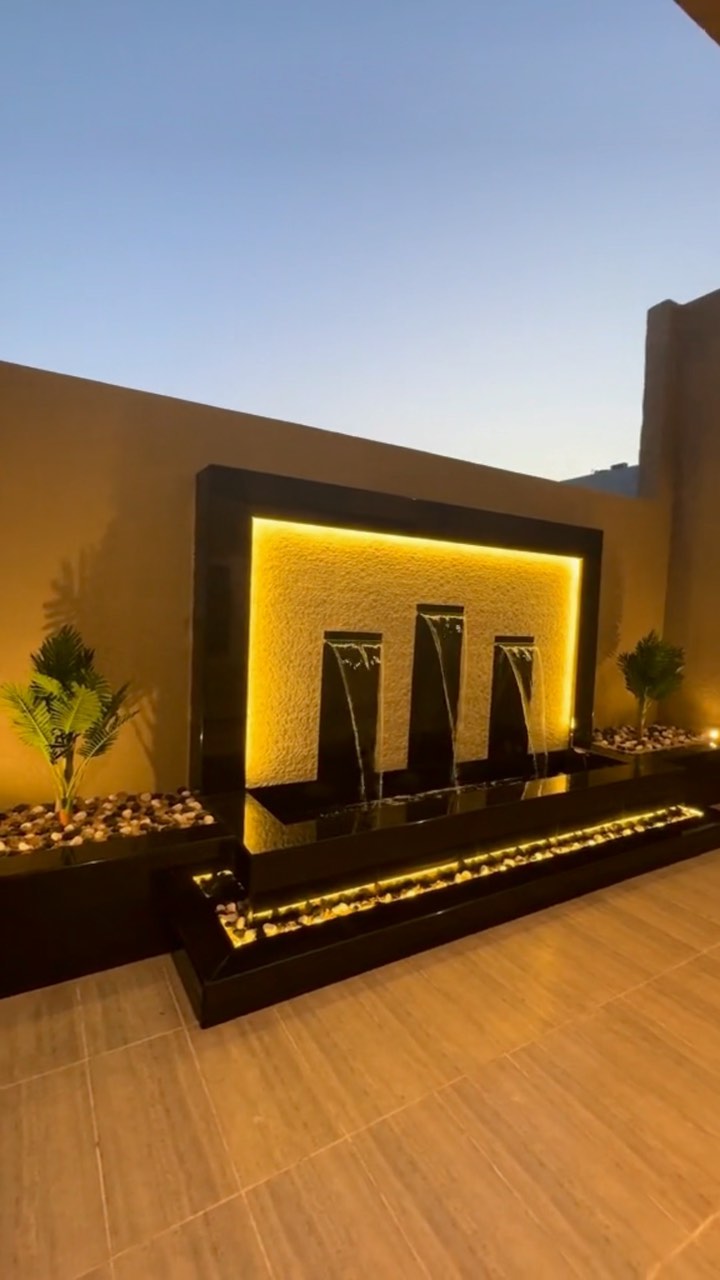 الشلال الجداري العصري: مثالي للمساحات الصغيرة أو الحديثة، بيعطي لمسة فاخرة بدون ما يحتاج مساحة كبيرة.